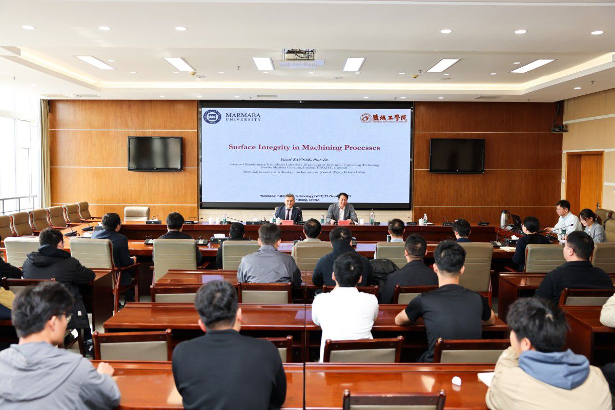 邵荣为Kaynak颁发兼职教授聘书。Kaynak教授以“机械加工过程中的表面完整性”为题,系统阐述了高性能材料加工中的表面完整性机理、增材制造后处理技术等前沿成果,并结合其承担的土耳其国家科学基金、NASA合作项目等案例,分析了绿色制造与可持续发展趋势。报告深入浅出,师生踊跃发言交流。