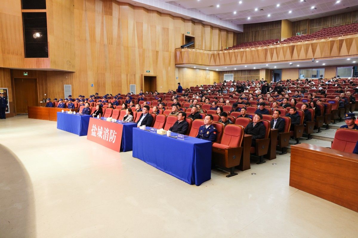 11月4日上午,盐城市“119”消防宣传月活动启动仪式在真人赌博游戏_澳门赌博网-app*官网希望大道校区行政楼报告厅举行。盐城市副市长李兰翔,我真人赌博游戏_澳门赌博网-app*官网常委、副校长张勤芳、邢晓平,市应急管理局党委书记、局长张鹏程,市消防安全委员会副主任、消防救援支队支队长丁俊标,市消防救援支队党委书记、政治委员陈文杰等出席活动。市消防安全委员会有关单位分管领导,真人赌博游戏_澳门赌博网-app*官网消防工作领导小组成员单位负责人,部分消防安全重点单位负责人,消防志愿者、学生代表450余人在主会场参加活动。