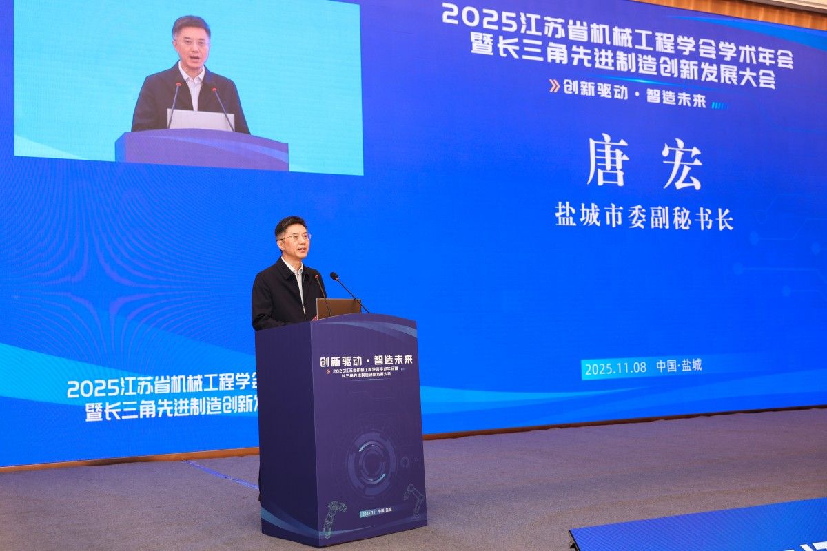 唐宏介绍了盐城作为长三角中心区城市在绿色低碳发展和先进制造业方面的布局与成果。他表示,盐城正积极构建“5+2”战略性新兴产业体系,希望以此次大会为契机深化产学研合作,共同推动制造业创新突破。王小峰指出,本次会议是落实“制造强国”战略的重要实践,省科协将全力支持机械工程领域的科技创新,为江苏高质量发展注入新动能。夏汉关表示,学会将持续搭建高水平交流平台,推动科技成果转化与产业升级,助力长三角制造业向智能化、绿色化迈进。