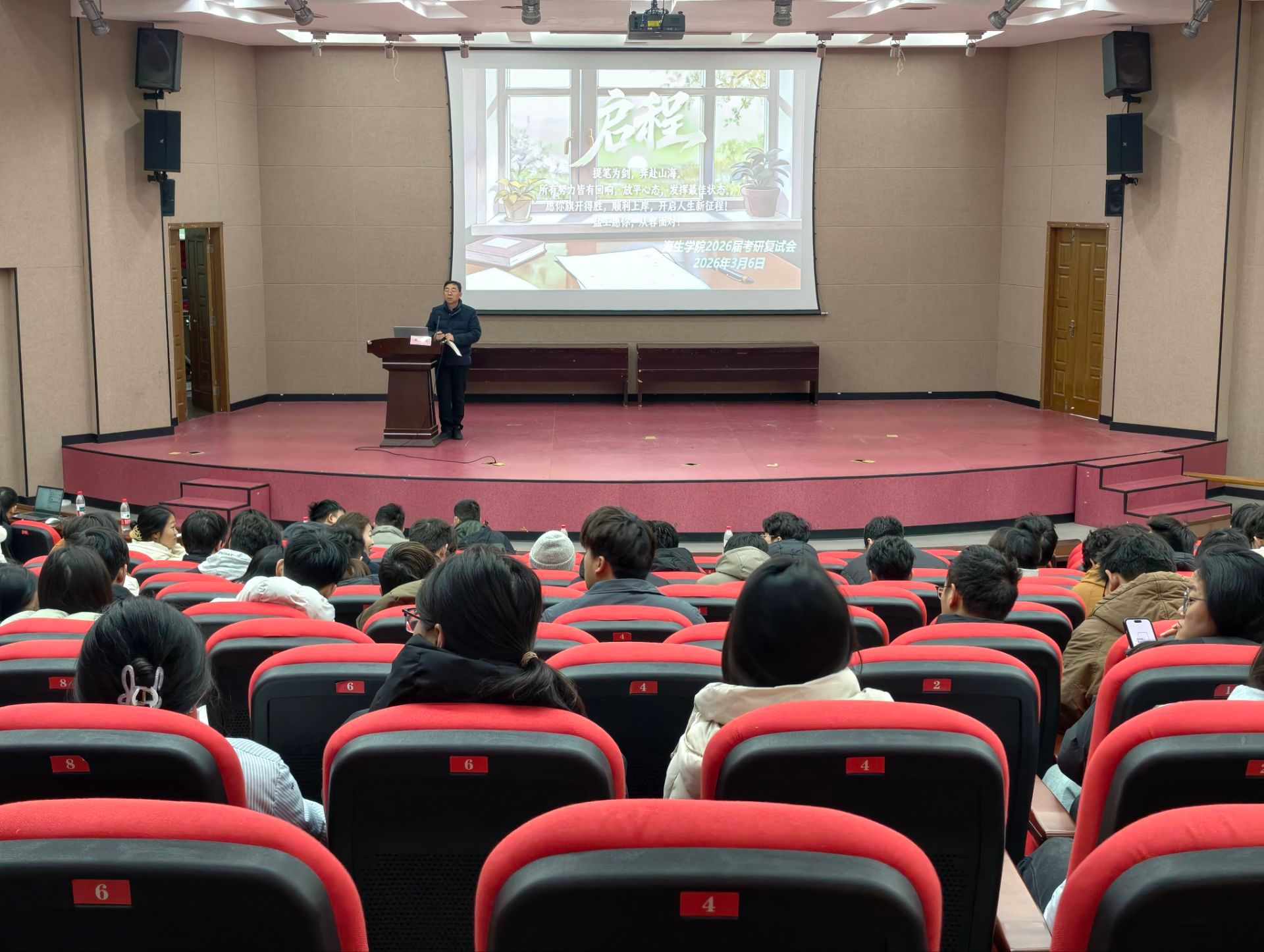 3月6日上午,海生学院在五四报告厅举办考研复试指导会,学院党总支书记高留才主持会议,副院长齐志涛、副书记孙新华出席,教科研办公室副主任陈小冬,海洋专业系主任隋延鸣,食品专业系主任傅润泽,生物专业系副主任熊敏,学业导师杨磊、吕永梅,毕业班辅导员及2026届考研初试上线同学参加。
