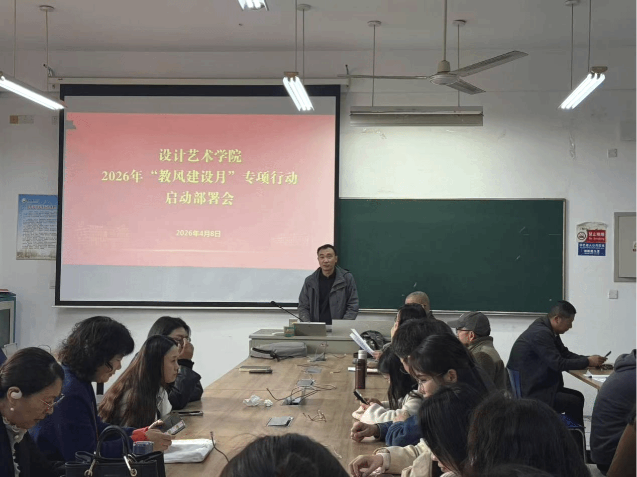 4月8日下午,设计艺术学院在润美楼A209召开2026年“教风建设月”启动部署会。院长张军,副院长顾晓卉、王文广及全体教职工参会。会议由党总支书记刘荣主持。