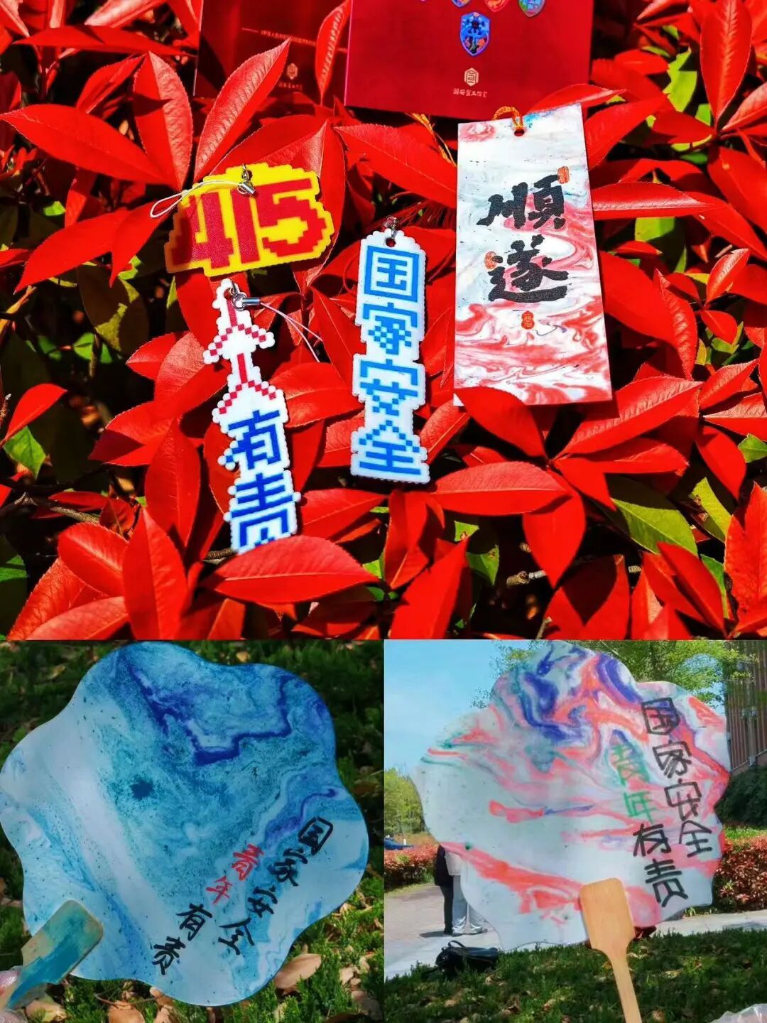 本次活动共设置四个环节。在线上知识答题与朋友圈主题传播环节,同学们需完成10道涵盖总体国家安全观、反间谍法、网络安全等核心知识点的题目作答,并转发活动主题与海报。答题过程中,学生们以答促学、查漏补缺,不仅夯实了国家安全知识储备,更推动安全知识在校园内实现以点带面、全域辐射的传播效应,切实筑牢校园国家安全教育网络宣传阵地,彰显网络思政育人实效。活动同步设置“安全知识趣味套圈”环节,将安全知识点融入趣味游戏,实现“玩中学、学中乐”,进一步强化安全防范意识。主题打卡墙前,同学们手持“青年担当,共护家国平安”等标语牌合影留念,一个个挺拔身影,彰显了新时代青年守护国家安全的青春担当。5米长卷前,同学们挥毫写下国家安全相关寄语,以笔墨传递责任与信念,将安全理念转化为青春承诺,留下珍贵印记。