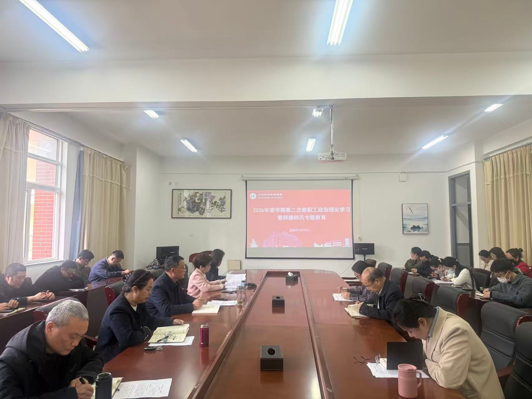 4月15日下午,人文学院在南校区仁和楼A304会议室开展2026年春学期第二次教职工政治理论学习暨师德师风专题教育。会议由学院党总支书记何登溢主持,全体教职工参加。