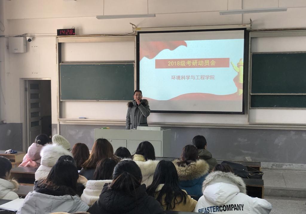 1月7日下午,环境学院在北校区体知楼S101教室召开了2018级考研动员大会。学院党总支书记陈阳、副书记周政,学院研究生邹超同学、孙研同学和18级全体本科学生出席。2018级辅导员沈丹老师主持。