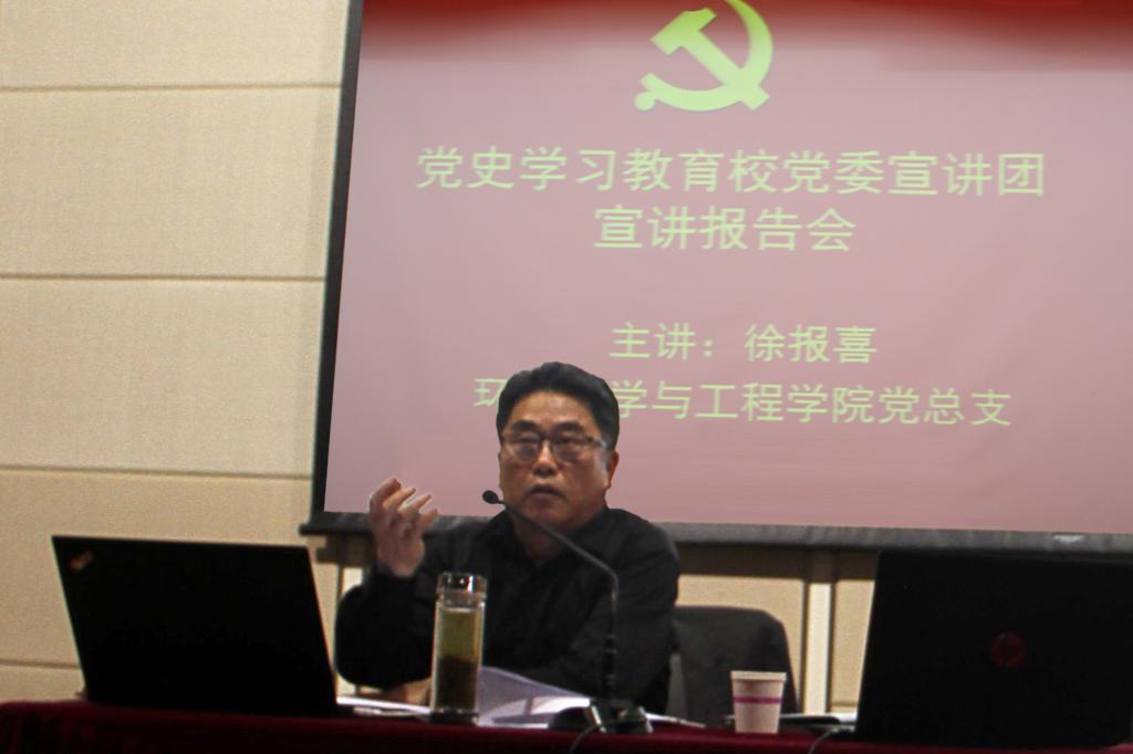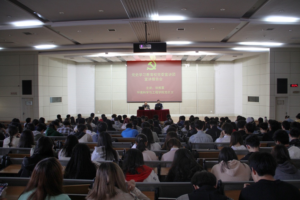 4月21日下午,在北校区化工楼报告厅,党史学习教育真人赌博游戏_澳门赌博网-app*官网宣讲团成员、校关工委副主任徐报喜为环境学院师生作题为“学习百年党史,做信念坚定的继承人”首场宣讲。学院党总支副书记周政主持,学院辅导员、学生党员、入党积极分子、学社干部、19级、20级学生代表等400余人参加。