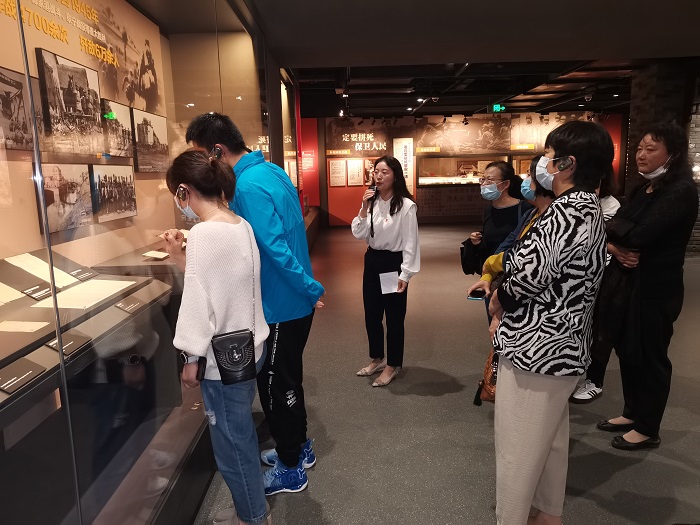 青年教师蔡云晨、李宝、张梦云经过前期精心备课,带领学院全体教师感受盐城的精神坐标——盐城博物馆。他们围绕盐城博物馆内的珍贵藏品和红色文物给大家介绍了盐阜大地上可歌可泣的的革命历史,讲述了盐阜儿女光辉的革命事迹,从过去、现在和未来三个维度给大家展现了一座历史文化名城——盐城。蔡云晨从星火初燃、华中砥柱、会师盐城、重建军部、敌后文化城5个部分介绍了盐城的新四军文化。李宝通过生动的讲述为大家呈现了新四军八路军会师盐城、开辟抗日根据地等生动的革命场景。张梦云重点解说了盐城迎接解放和欢庆胜利的故事。