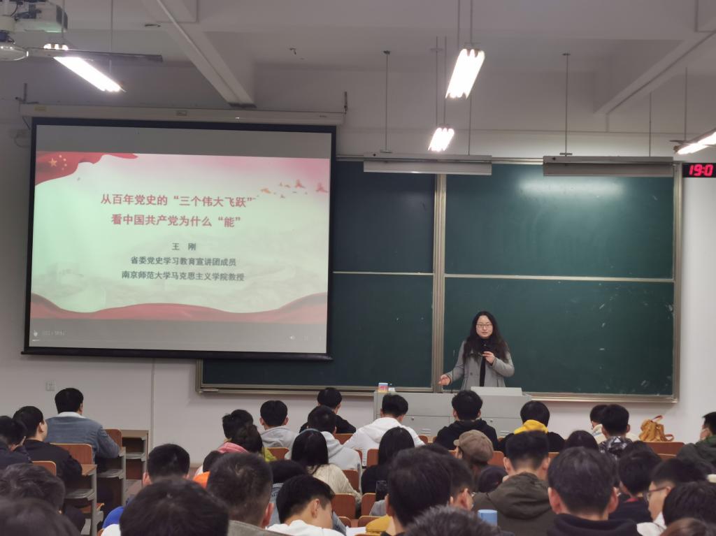 会上,大家认真聆听“四史”大课。北京师范大学赵朝峰教授介绍了中国先进分子选择马克思主义与中国共产党的成立、中国共产党运用马克思主义创造的辉煌成就及启示等两个方面的内容,阐述了马克思主义与中国共产党的百年辉煌;武汉大学卢勇教授通过讲述中国共产党各个时期的历史,展示了中国共产党与中华民族的伟大复兴;南京航空航天大学何畏教授通过介绍不同时期的革命精神,回顾了中国共产党革命精神形成与传承的百年历程。