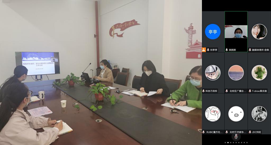 为扎实落实真人赌博游戏_澳门赌博网-app*官网疫情防控工作要求,进一步做好对校级学生组织和学生社团的管理工作,4月3日上午,校团委通过腾讯会议召开2022年春学期校级学生组织、学生社团负责人疫情防控工作线上会议。校团委书记杨秀丽,副书记方璇,校团委全体工作人员和校级学生组织、学生社团负责人等70余人参加会议。