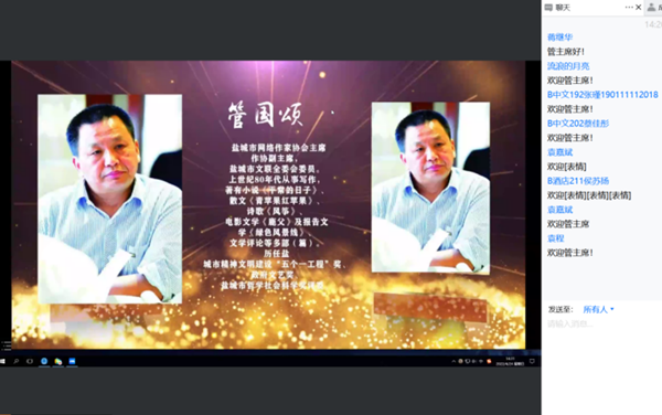 为加强人文学院师生对红色文学的理解,感受红色文学的魅力,4月24日下午,人文学院特邀请盐城市网络作家协会主席、盐城市作协副主席、《湖海》文学执行副主编管国颂先生做题为《红色文学的传承脉络和共产党精神谱系的融合路径》讲座,会议由副院长陶文俊主持,300多名师生在腾讯会议上在线聆听。