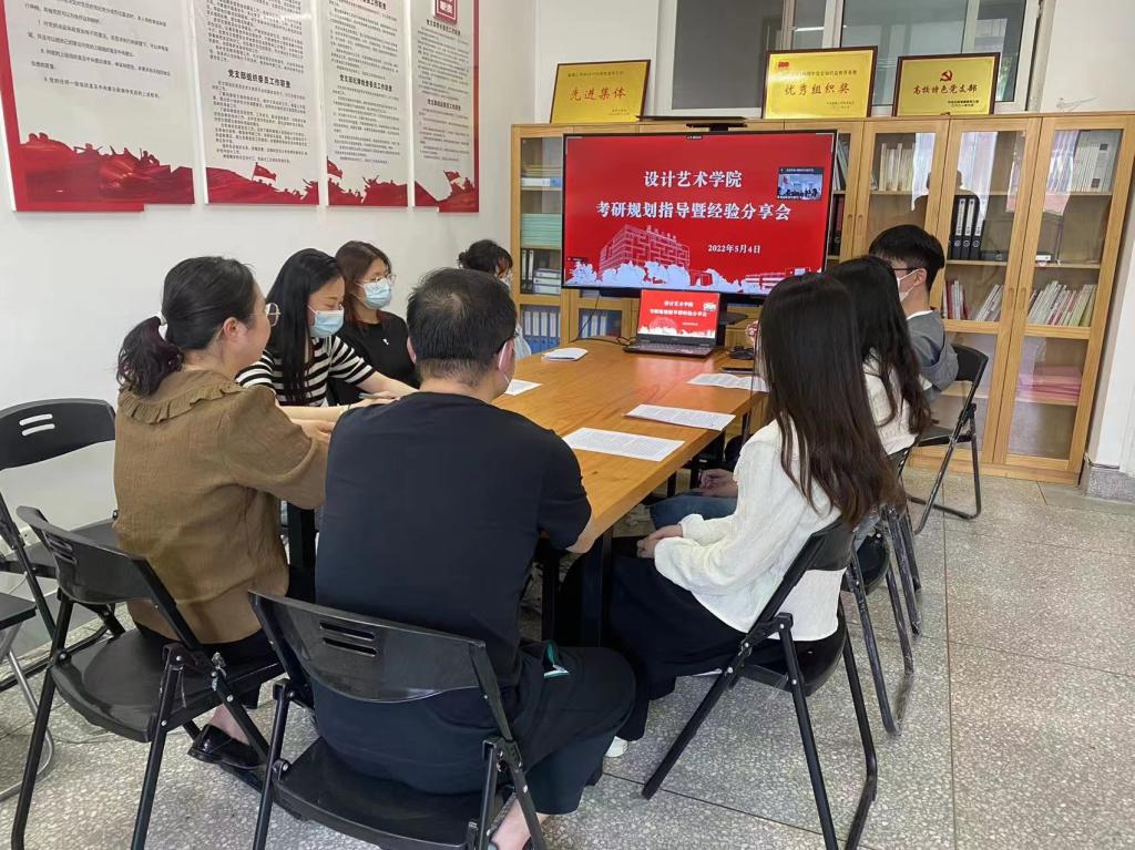 5月4日下午,在润美楼A306会议室,设计艺术学院召开考研规划指导暨经验分享会。党总支副书记杨士卿,环境设计系主任徐丹,新进博士王辉,学工办、团委负责人出席,2022年考取研究生代表和2019级、2020级、2021级共二百余名学生线上参加。会议由学工办副主任顾清主持。