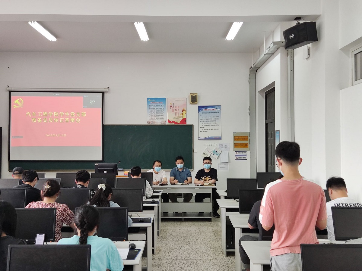 5月18日下午,汽车工程学院在机械馆B407和B412分别召开预备党员转正答辩会。答辩会分别由党总支副书记姜华和学生党支部书记孙进主持,姜华及学生党支部委员担任评委,52名预备党员参加。
