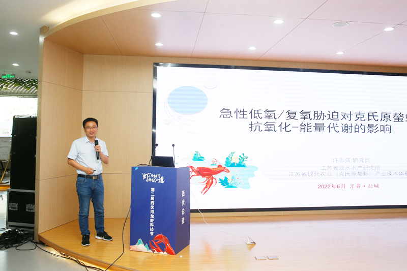 针对小龙虾养殖过程中水体溶氧常常发生剧烈变化的问题,许志强研究员作题为《急性低氧/复氧胁迫对克氏原螯虾抗氧化-能量代谢的影响》的学术报告。他强调小龙虾养殖生产中需要特别注意低氧/复氧胁迫问题,可以通过制定合理的放养密度、选择优质饲料等方法避免在养殖过程中出现低氧-复氧胁迫。
