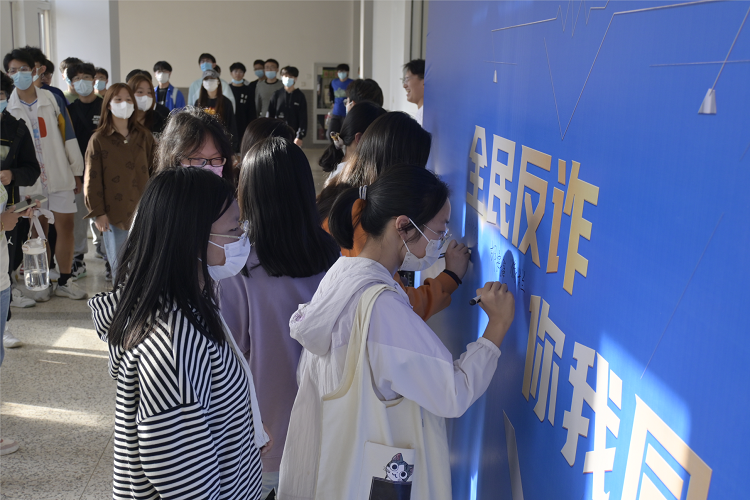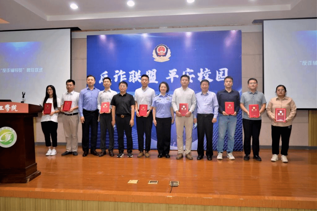 活动中,中国好人、全国公安系统二级英雄模范、亭湖反诈代言人刘婵带领与会人员宣读《反诈倡议书》。8位辅导员代表和10位学生代表被聘为“反诈宣传员”。