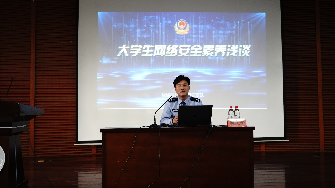 韩志华从增强网络安全防范意识、提升网络信息甄别能力、自觉抵制网络不良诱惑这三个方面出发,为新生普及网络安全知识。他向新生强调了保护个人信息的重要性,告诫新生要谨防网络诈骗、勿信网络谣言、远离“校园贷”,并结合具体案例,进行深入分析,让新生对网络安全有了更深层次的认识。他呼吁,作为新时代大学生,要做网络法治的建设者,网络安全的维护者,网络正义的捍卫者,共同营造风清气正的网络环境。