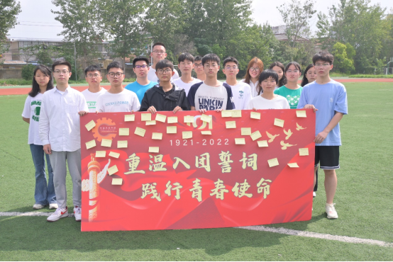 10月1日,学院团委在建军东路校区举行“重温入团誓词,勇担时代使命”主题活动。在新生辅导员冯媛媛老师的带领下,全体团员在团旗团徽前高举右拳,齐声宣读入团誓词,之后齐唱团歌《光荣啊,中国共青团》,庄严嘹亮的歌声回荡在操场的每个角落。最后,同学们在活动展板上留下自己的对祖国的祝福语并合影留念。