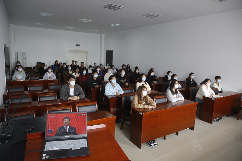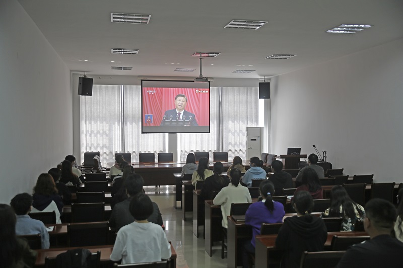 10月16日上午10时,海生学院理论学习中心组成员、党支部书记、党员师生代表、学生团员代表等近百人集中观看了中国共产党第二十次全国代表大会开幕会直播。