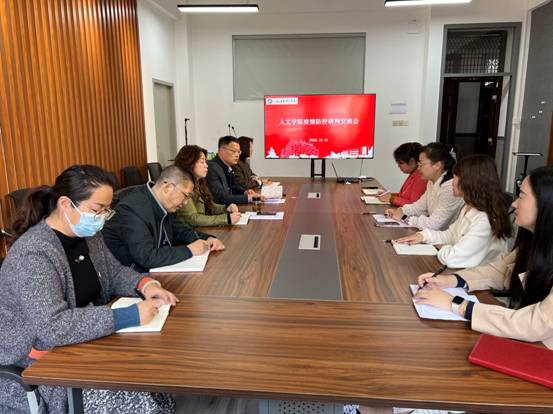 10月16日上午,在希望大道校区仁和楼A302会议室,人文学院召开疫情防控工作研判交流会。会议由学院党总支书记何登溢主持,学院疫情防控工作小组全体成员参加。