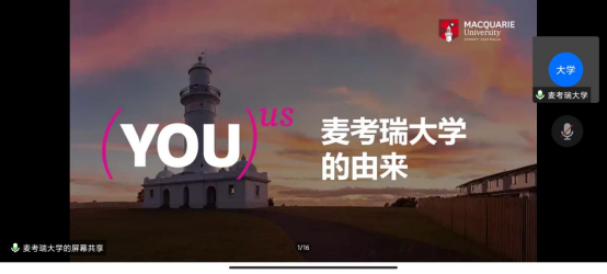 Jane Huang表示,麦考瑞大学作为世界排名前1%的大学之一,作为澳大利亚最好的大学之一,其毕业生受到全球雇主的认可。她从麦考瑞大学办学历史、悉尼印象、澳洲留学优势三个方面进行介绍,具体阐述了大学人才培养教育体系设置、项目特色、奖学金和留学生权益保障、就业情况等方面的内容,强调了其具有悉尼首个在校地铁站,交通便利,拥有全面高科技机器人提书系统图书馆和创业孵化中心,能充分为留学生提供与领先企业和未来雇主建立联系的机会等项目优势。Jane Huang鼓励同学们深入了解麦考瑞大学和澳洲留学政策,希望同学们能扩展国际视野,把握留学机会,在澳大利亚度过青春奋斗的灿烂时光。