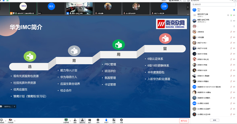 10月30日上午,信息学院在南校区怀德楼B410会议室召开企业线上招聘宣讲会,邀请南京欣网通信科技股份有限公司、苏州酷豆物联科技有限公司、海隆软件(昆山)有限公司、京颐大健康产业发展(江苏)有限公司校园招聘负责人进行线上招聘宣讲。宣讲会由信息学院党委副书记戴建主持,2019级学生参加会议。