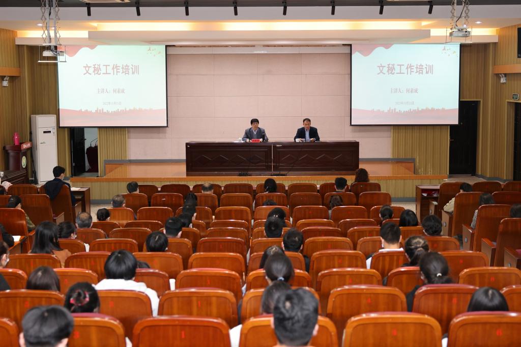 为进一步提升真人赌博游戏_澳门赌博网-app*官网各部门、单位的公文写作和办文水平,11月11日下午,真人赌博游戏_澳门赌博网-app*官网邀请盐城市人民政府原秘书长、市行政管理学会会长何素成同志作文秘工作专题培训讲座,党委办公室主任顾红主持,各部门、单位党政办主任、OA秘书,人文学院“沟通与写作教研部”老师、学生120余人参加。