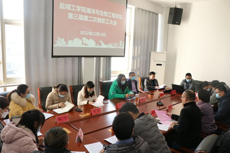 12月14日下午,海生学院第三届第二次教职工大会在北校区学院会议室召开。校工会主席谢毅敏应邀到会致辞,学院党总支书记高留才主持会议,海生学院全体教职工暨工会会员参加。