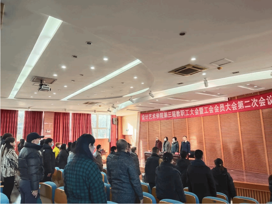 12月14日下午2点半,在希望大道校区润美楼报告厅,设计艺术学院召开第三届教职工大会暨工会会员大会第二次会议。学院党总支书记胡凌霞,副院长顾晓卉、王文广出席,党总支副书记、分工会主席杨士卿主持会议,全体教职工、工会会员参加。
