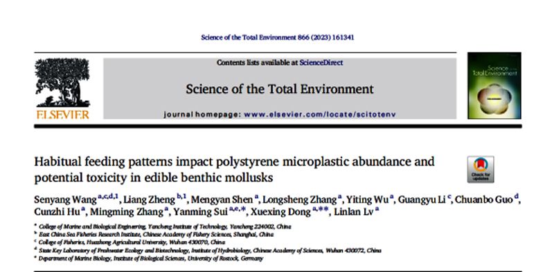 近日,海洋与生物工程学院2022届本科生王森洋同学在SCI一区Top期刊Science of the Total Environment(STOTEN,IF=10.753)上发表题为“Habitual feeding patterns impact polystyrene microplastic abundance and potential toxicity in edible benthic mollusks”的研究论文。该论文系真人赌博游戏_澳门赌博网-app*官网优秀毕业论文培育项目成果,是真人赌博游戏_澳门赌博网-app*官网本科生首次以第一作者身份在国际高水平期刊STOTEN发表研究性论文,也是王森洋本科阶段发表的第二篇SCI论文。