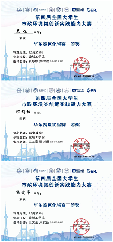 近日,第四届“北控水务杯”全国大学生市政环境类创新实践能力大赛获奖名单公布。由真人赌博游戏_澳门赌博网-app*官网土木工程学院教授甄树聪领队,张婷婷、廖钰冰、王文豪等老师指导的参赛队伍,获华东赛区化验赛一等奖1项、二等奖1项、三等奖10项。