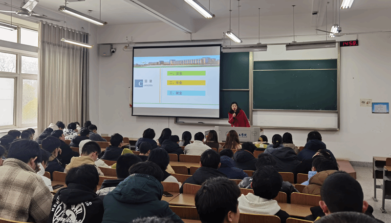 讲座上,杨小龙简要介绍了企业和个人基本情况,结合工作和发展经历与同学们分享自我定位、岗位适应、学习提升等三方面经验,指导同学们自我认知以明确就业目标、涵养人格以适应工作岗位、理论联系实践以提升专业能力。