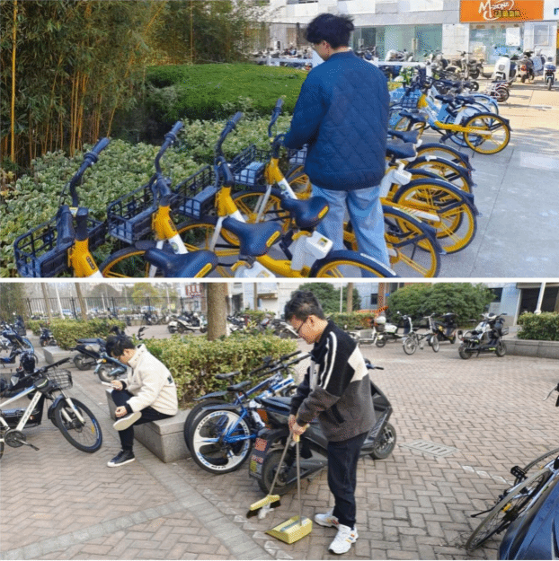在“赓续雷锋精神,共建和谐校园”校内志愿服务行动中,人文青年志愿者们立足校园,开展整理共享单车、打扫教室卫生、清洁卫生死角、清理校园垃圾、为“校友林”树木浇水等校内志愿服务活动,不仅美化了校园环境,同时也让同学们在具体实践中加强劳动教育,培养了勤俭、奋斗、创新、奉献的劳动精神。