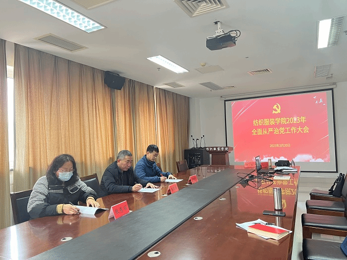 3月20日上午,纺织服装学院召开2023年全面从严治党工作专题会议,党总支书记宋孝浜主持会议,学院全体科级以上干部、专业系(实验中心)主任、党支部书记参加。