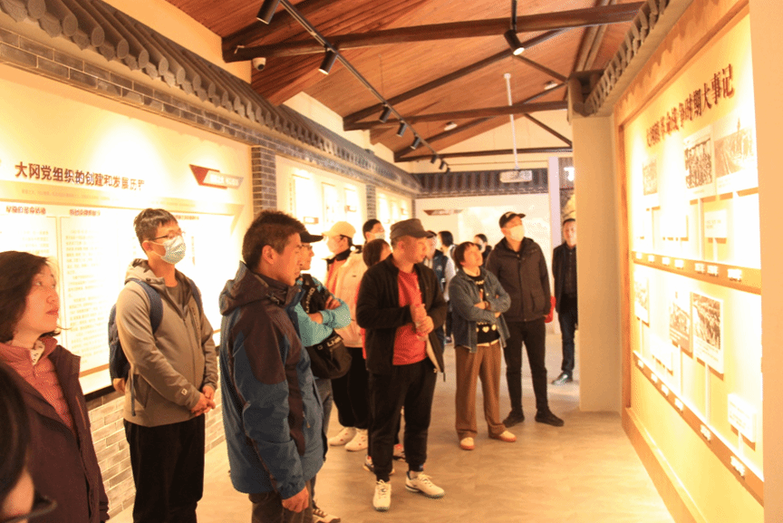 参观过程中,工作人员向所有教职工介绍了佳富村的红色基因。桃花红雨英雄血,碧海丹霞志士心。,因革命烈士丁佳富而得名。纪念馆主要展示丁佳富烈士的照片遗物和他的生平事迹等,同时展示了在大冈这片热土上涌现的140名革命烈士事迹。丁佳富顽强拼搏、宁死不屈的精神,也一直激励着一代又一代人。近年来,佳富村以“生态宜居”为主题,围绕“风景佳,百姓富”,坚持在田园上“绘图”,成为远近闻名的文明村、旅游村、特色桃果产业村和红色文化村。全体党员在切身感受红色文化和爱国主义的同时,也见证了党和政府在社会主义现代化建设中取得的巨大成就。