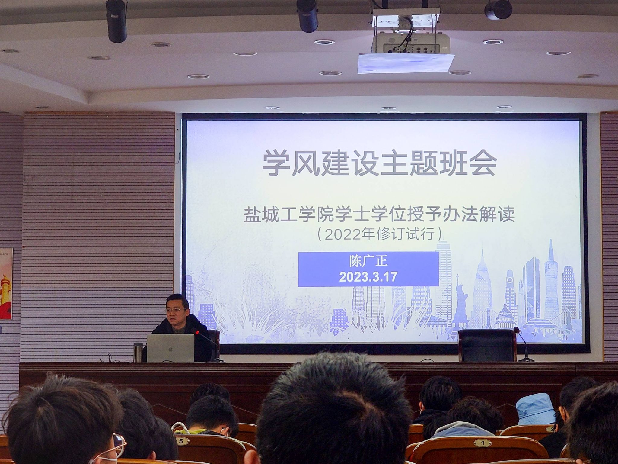 班会上,辅导员以《真人赌博游戏_澳门赌博网-app*官网学士学位授予办法(2022年修订试行)》为主要内容,结合责任班级学生现有学分绩点、外国语成绩等,从学位授予条件、学位授予程序、学位质量保障和救济、学位注册及证书管理等方面进行详细解读。此次主题班会,更加明确地将校学位授予办法呈现在同学们面前,着重强调要形成良好考风,严明考试纪律,诚信考试,以考风促学风;要坚持不懈常抓教育,端正学习态度,鼓励同学们在学习上积极进取;要强化班级管理,学生干部带头共同树立良好的学习风气。同时,辅导员通过举例阐述了学风建设的作用和意义,让同学们深刻的认识到应该坚持以学业为重,明确自己的目标,找到心中的梦想并为之奋斗,将时间都用在有意义的事情上。