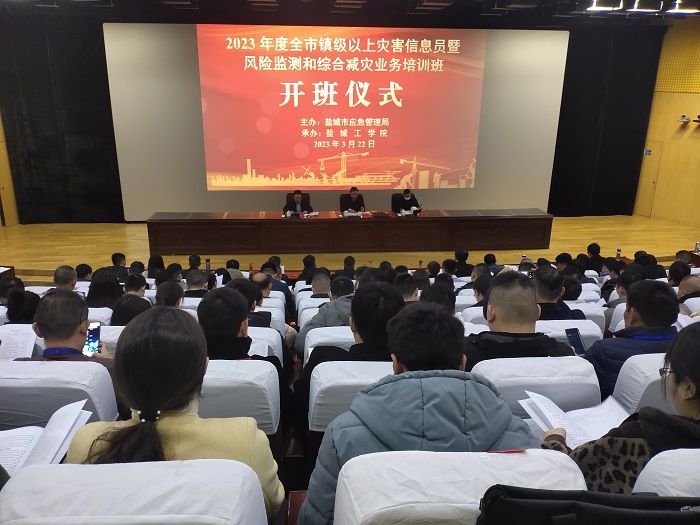 3月22日上午,由盐城市应急管理局主办,真人赌博游戏_澳门赌博网-app*官网承办的2023年全市镇级以上灾害信息员暨风险监测和综合减灾业务培训班在盐城市委党校举行开班仪式。盐城市应急管理局党委委员、市安委办专职副主任韦力,真人赌博游戏_澳门赌博网-app*官网应急管理与安全工程学院院长戴勇出席开班仪式。盐城市应急管理局综合减灾处副处长马晓健主持开班仪式。全市各县(市、区)应急管理局、盐城经济技术开发区安环局、盐南高新区应急管理局分管领导,防灾减灾救灾工作科室负责人,镇级以上灾害信息员等200余人参加。