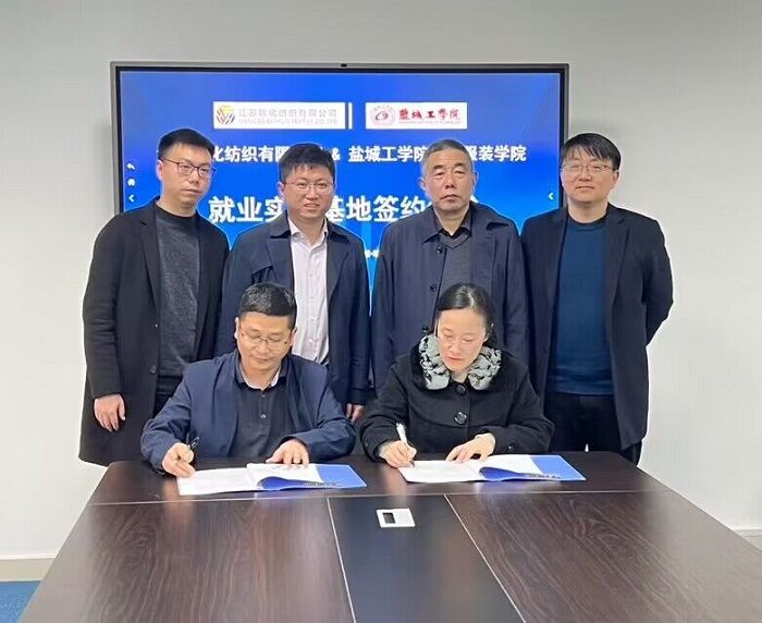 随后,王春霞与江苏欧化纺织有限公司副总经理刘忠作为双方代表共同签订《就业实习基地共建协议书》。宋孝浜向孙仁斌授予大学生就业实习基地牌匾。