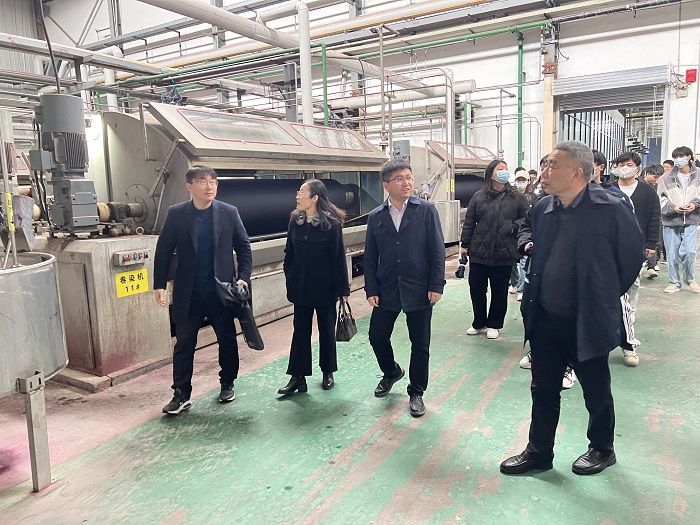 首先,江苏欧化纺织有限公司对学院师生的到来表示热烈欢迎。之后,公司方带领师生在生产厂区内进行实地参观,并对当前公司的整体运营情况、内部环境、生产工艺进行了详细的讲解。