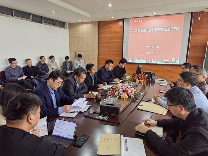 4月12日下午,产业技术研究院在北校区知达楼AE209会议室组织开展2023年国家安全教育日普法宣传活动。研究院党总支书记、院长严金龙主持会议,研究院全体教职工参加。