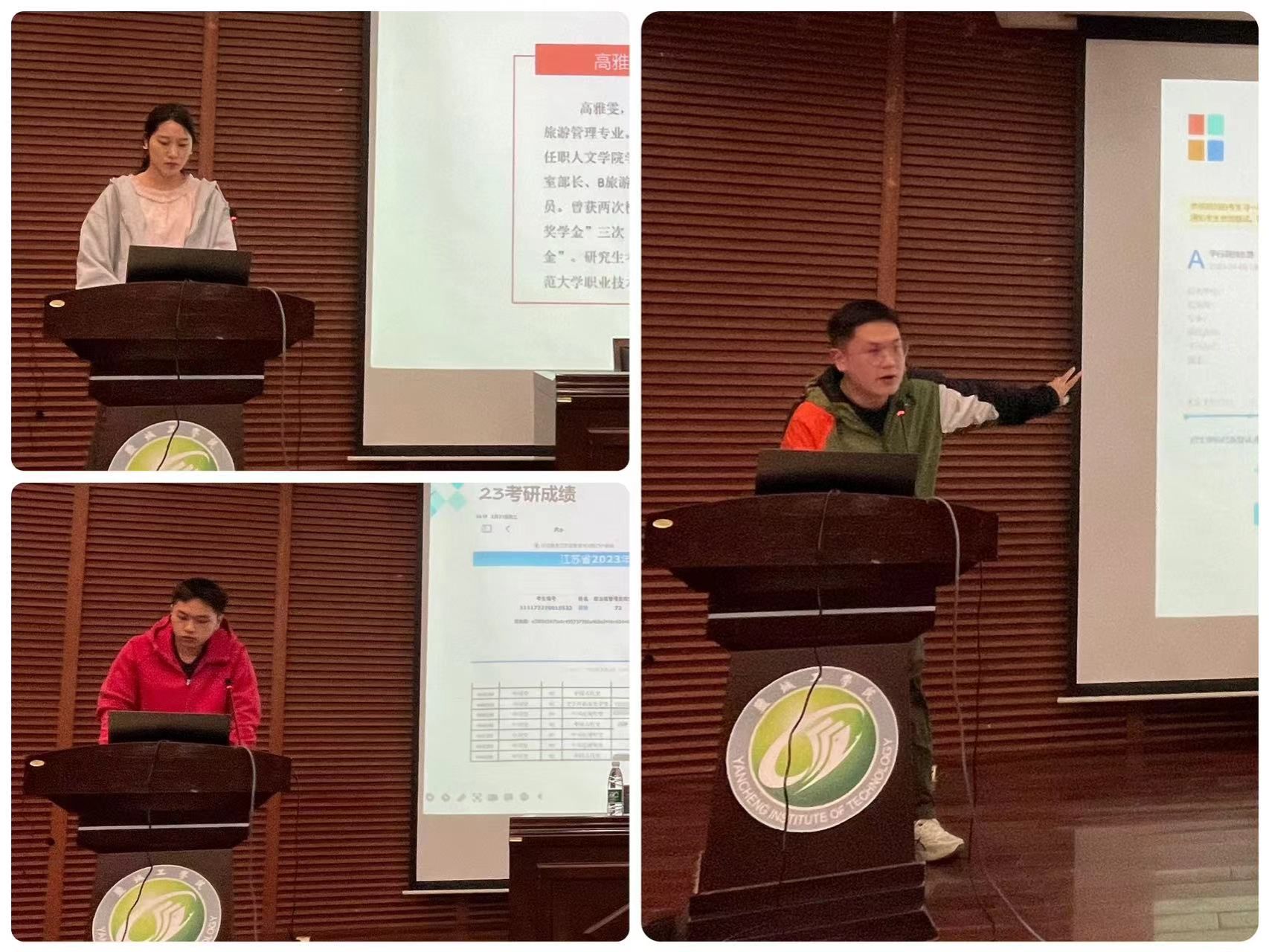 会上,B中文192班路捷同学从考研动机、学习计划、考前准备等方面详细介绍了自己的备考经验,并提醒学弟学妹们要提前规划、尽早准备,做到全心备考、科学报考、沉着应考。B旅游191班高雅雯同学则从择校、初试、复试等三个维度进行讲解,引导同学们不要盲目攀比学习进度,需要有目标有方向的坚持,时刻铭记考研初心。B酒店191班王晨宇同学着重讲述了自己考研调剂的心路历程,并鼓励大家不要轻言放弃,坚持就是胜利!