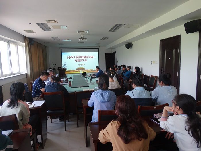 5月19日下午,纺织服装学院在学院会议室举办了《中华人民共和国民法典》专题学习教育会,全体教职工参加。院党总支副书记、纪检委员杨军领学了民法典原文节选。他强调,民法典是民事权利的宣言书和保障书,人们关注民法典,就是在关心自己的切身权益,就是在期待更有法治保障的美好幸福生活。