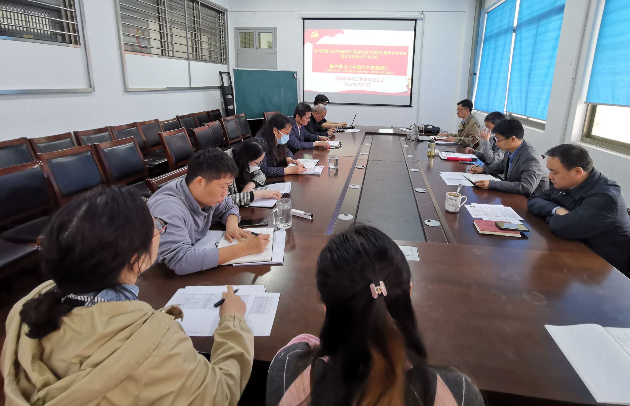 5月22日上午,环境学院党总支理论学习中心组在学院会议室召开学习贯彻习近平新时代中国特色社会主义思想主题教育专题学习会。会议由院党总支书记陈阳主持,学院中心组全体教师参加。