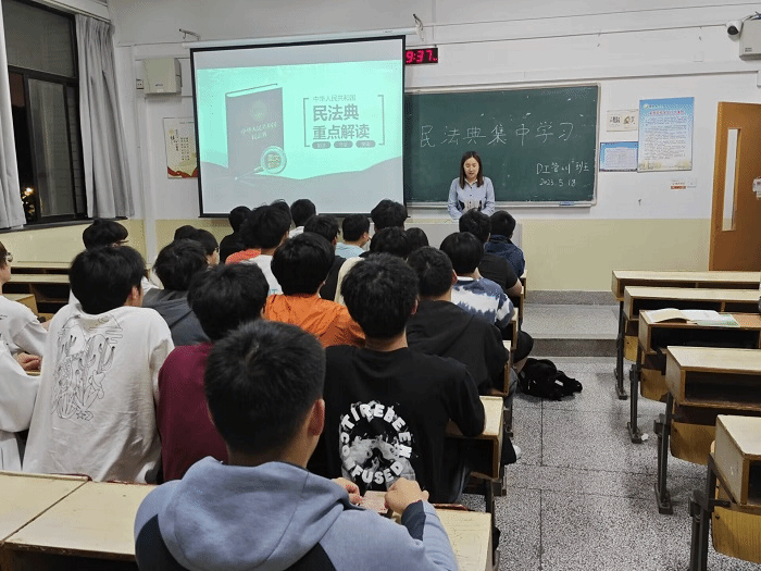 5月19日,学院各班辅导员积极组织班级同学召开主题班会。班会上,辅导员对学生进行民法典相关知识的宣传教育,解读了民法典出台的重大意义和相关法律法规。