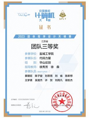 真人赌博游戏_澳门赌博网-app*官网信息工程学院经过选拔的20名队员,在学院教师黄曙荣、徐森、徐秀芳的悉心指导下积极组织训练,锻炼选手的分析问题和算法设计能力,提升队伍的竞争力和契合度,最终在本次赛事的线上比赛中取得佳绩。其中,“北巷清风”队在全国总决赛“华山论剑”组中荣获团队三等奖、江苏省团队二等奖,“代码力量”队荣获江苏省团队三等奖。同时,2020级计算机科学与技术专业戴赟、2020级人工智能专业张涛和2021级人工智能专业黄子豪三位同学荣获全国总决赛个人三等奖。
