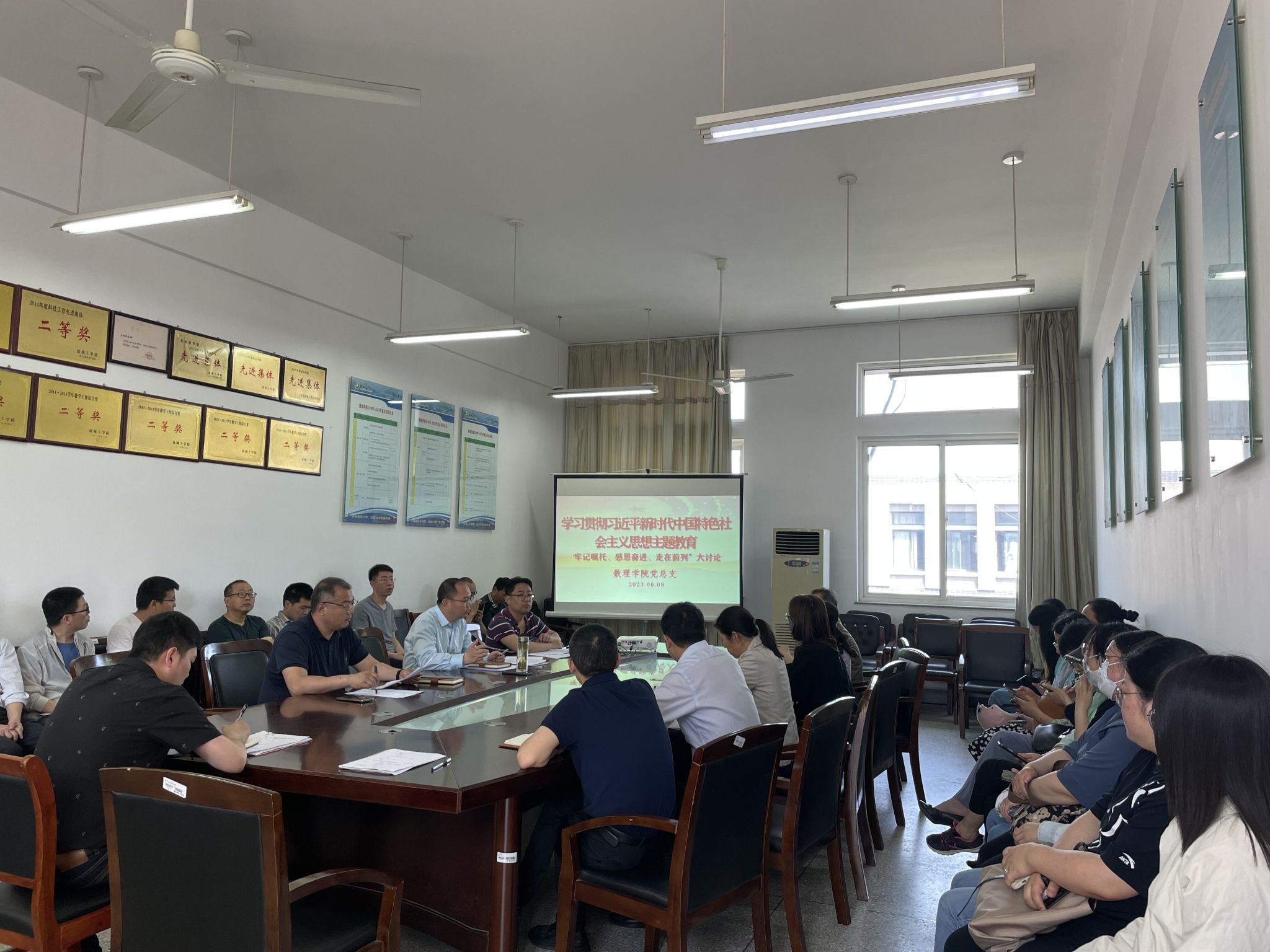 6月9日下午,数理学院在希望大道校区博学楼B512会议室召开学习贯彻习近平新时代中国特色社会主义思想主题教育“牢记嘱托、感恩奋进、走在前列”大讨论工作会议。会议由党总支书记魏伟华主持,全体党员参加。