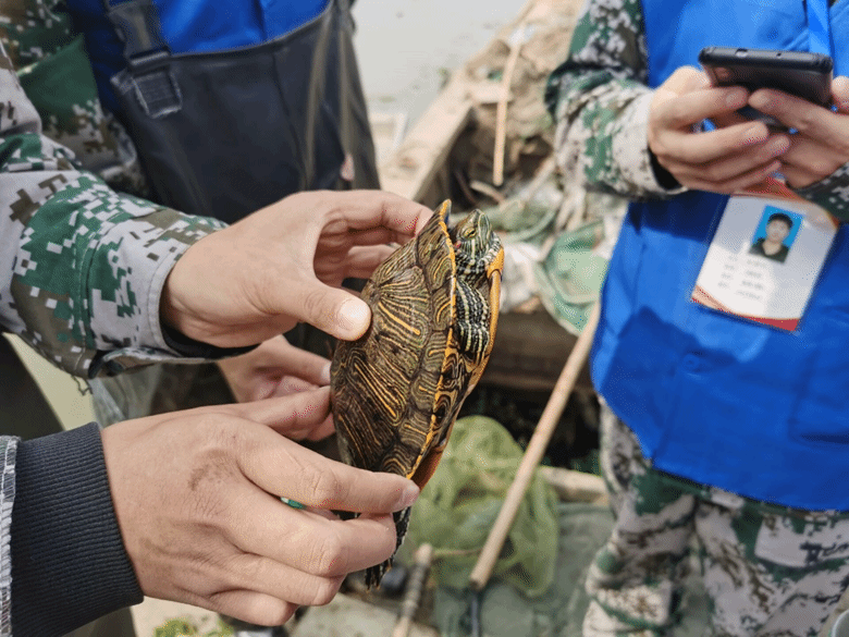 目前,生态系统正遭受外来入侵水生动物的威胁,外来入侵物种对当地生物多样性和生态系统功能造成严重影响,可能引发灾难性的连锁反应。为应对这一问题,海生学院社会实践团队开展外来入侵水生动物普查活动,旨在保护水域生态系统。常见的外来入侵水生动物如:鳄雀鳝、红耳彩龟(巴西龟)、豹纹翼甲鲶(清道夫)、罗非鱼、福寿螺、牛蛙、克氏原螯虾(小龙虾)、食人鲳、大鳄龟、马那瓜丽体鱼(淡水石斑鱼)、食蚊鱼等。了解这些入侵物种的分布、数量和影响,以便能够有效管理和控制它们。