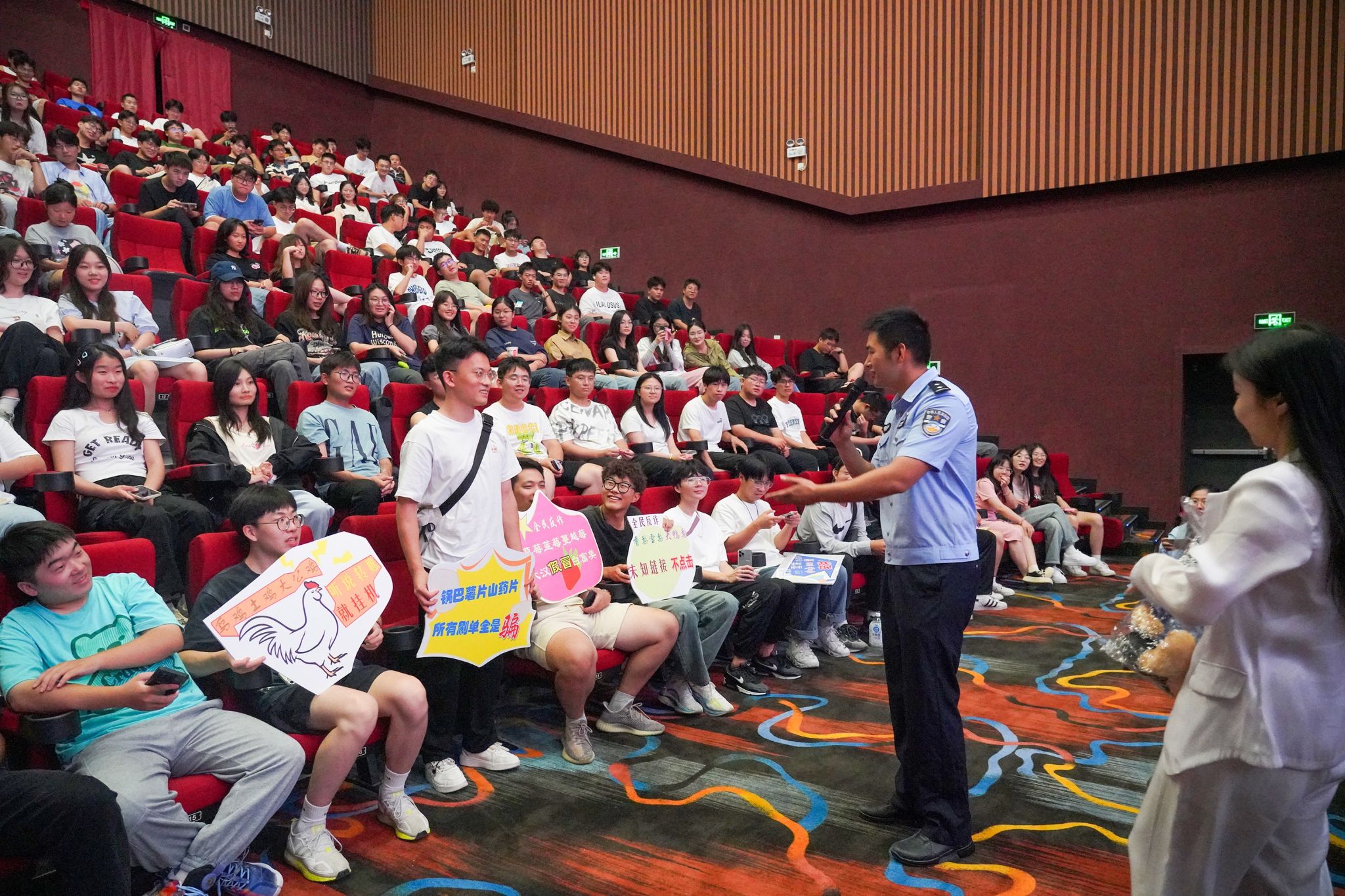 观影前,东城派出所、亭湖公安分局反诈中心开展《校园安全,你我共护——防诈反诈开学第一课》宣讲,宣讲人以贴近大家生活的真实案例为切入点,耐心讲解了网络电信诈骗的常见类型和手段,并用最新最全的反诈“硬核”干货帮助在场师生识破诈骗陷阱及有效应对方式,给在场师生做了一场生动详细的反诈骗教育讲座。现场还开展了防诈骗知识问答环节,师生踊跃参与,现场气氛热烈。