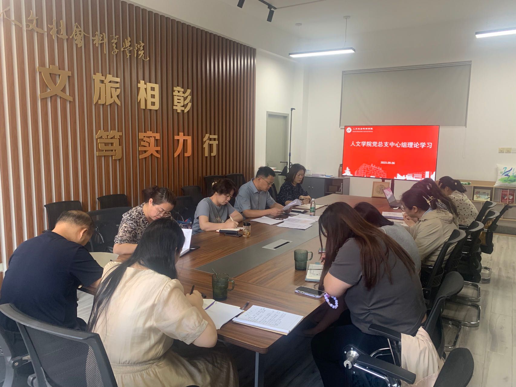 9月6日下午,在仁和楼A302会议室,人文学院党总支召开学习贯彻习近平新时代中国特色社会主义思想主题教育专题学习会。会议由学院党总支书记何登溢主持,中心组全体成员参加。