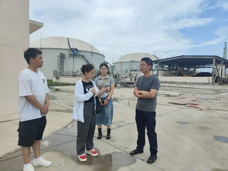 公司张同强副经理对小分队的到访表示热烈欢迎,并带领队员们参观了他们的厂区。据张经理介绍,公司采用秸秆与鸡粪、牛粪按一定比例混合,经过厌氧发酵、脱水除硫后产生高浓度生物天然气,用CNG槽罐车运输进入天然气管网。每年可消纳周边地区3000-4000亩地产生的秸秆,避免了秸秆焚烧、抛弃带来的环境污染。此外,产生的沼渣和沼液还可以作为有机肥还田,供农户使用,助力构建绿色农业产业链,取得了非常好的生态经济效益。