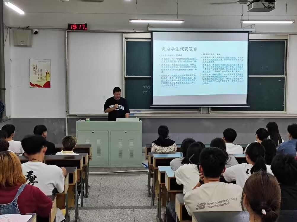 9月10日晚,经管学院在北校区体知楼开展新生入学教育第一次班会。学院党委书记卜树春,学工办主任高加友,新生辅导员胡宗群、赵文捷和全体2023级新生参加。