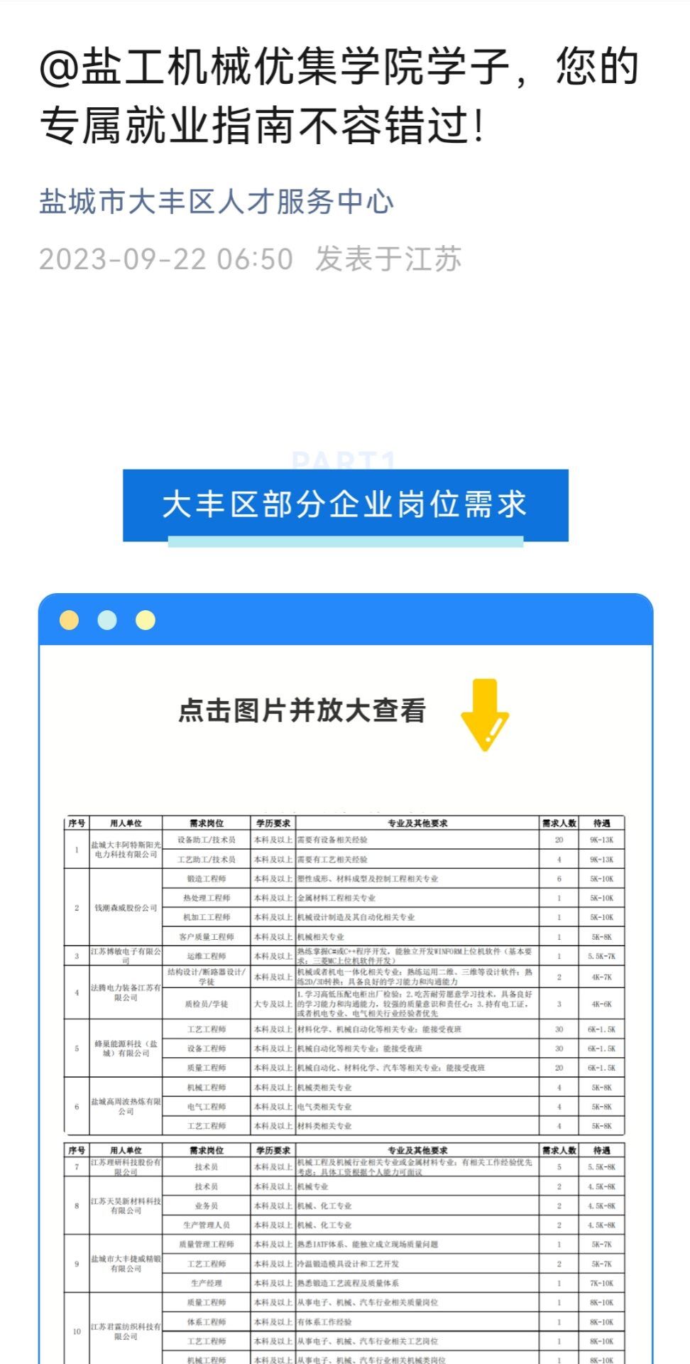 会上,刘加东介绍了黄海明珠人才政策及就业见习政策,并在大丰人才服务中心公众号上为机械优集学院学子发布了专属就业指南;马晓英介绍了机械优集学院2024届毕业生基本情况和就业期望;盐城大丰阿特斯阳光电力科技有限公司、钱潮森威股份有限公司、江苏博敏电子有限公司、江苏大洋精锻有限公司、江苏博汇纸业有限公司等5家公司代表介绍了企业发展和招聘需求情况。