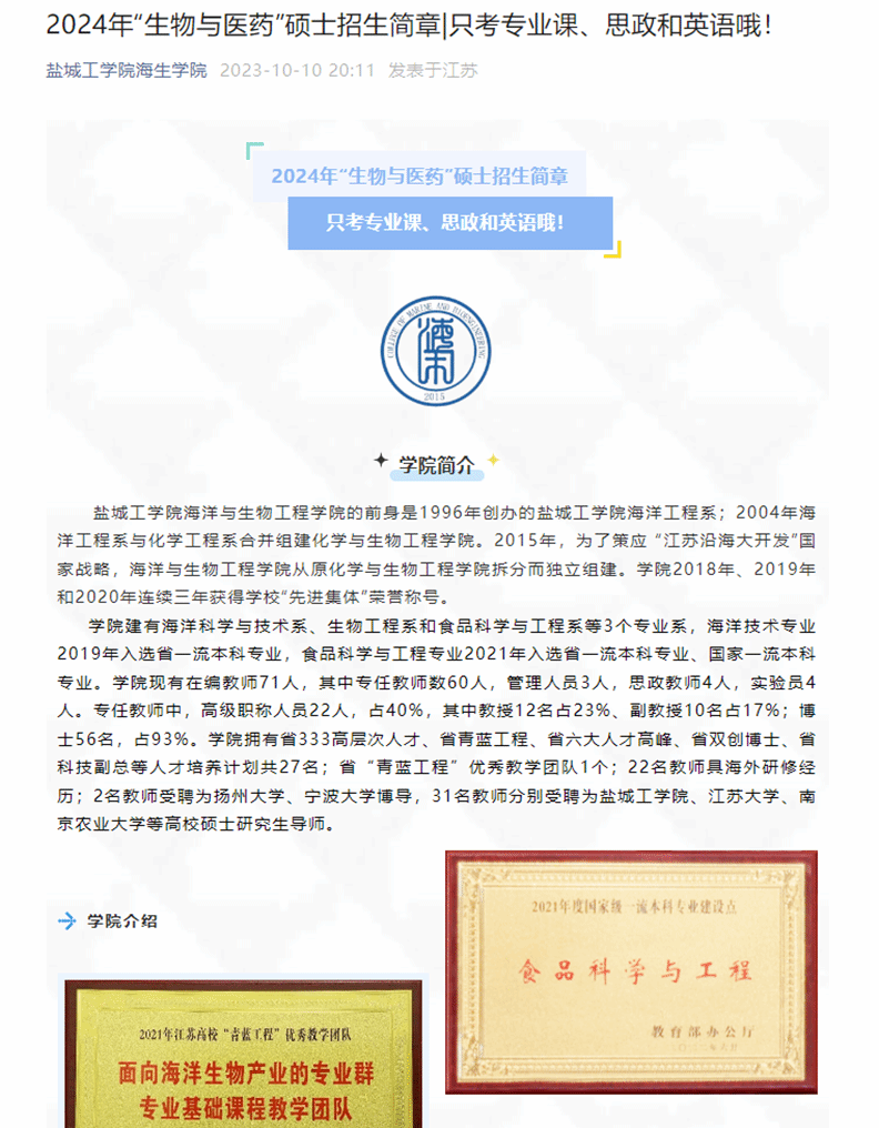 为宣传学院硕士点,10月16日至18日,海洋与生物工程学院副院长(主持工作)彭斌,副院长齐志涛、刘飞,学科秘书陈小冬和学工办副主任郭海松赴盐城师范学院、常熟理工学院、淮阴工学院、徐州工程学院开展研究生招生宣传工作。